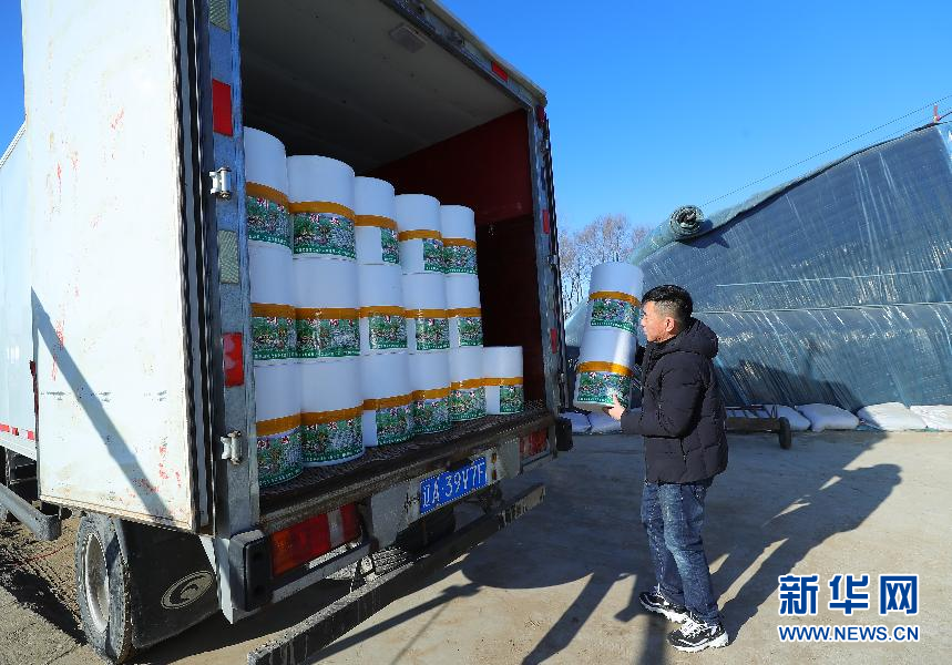 在新民市大民屯鎮毓寶臺村,農民裝運包裝好的農產品。新華社記者 楊青 攝
