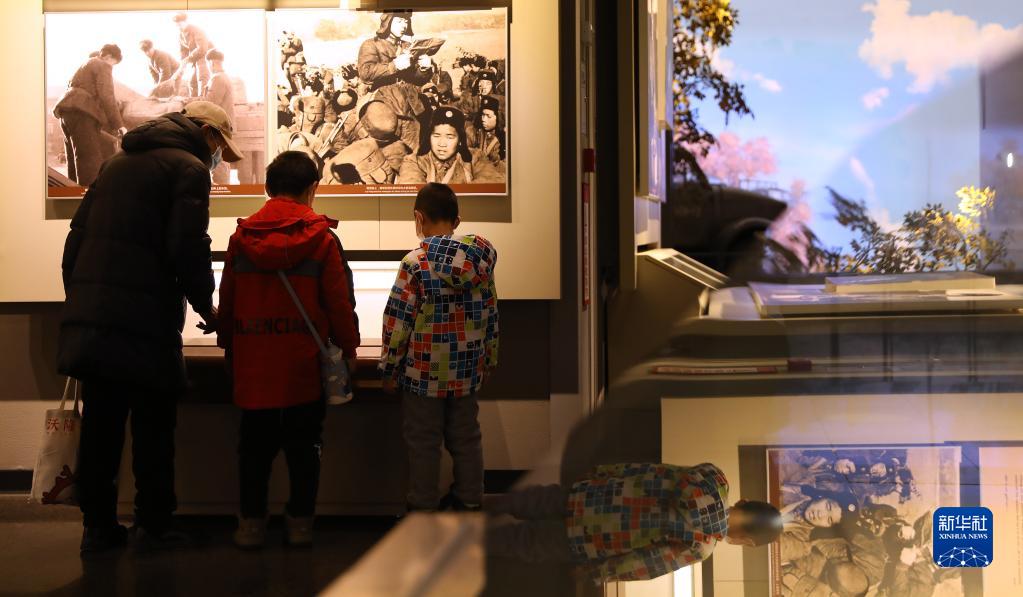 2月10日,小朋友跟隨家長在雷鋒紀念館里參觀。新華社記者 姚劍鋒 攝