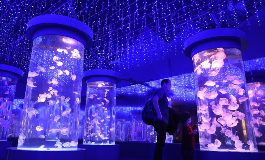 周末,不少市民帶著孩子來到皇家海洋樂園,近距離了解海洋生物。
