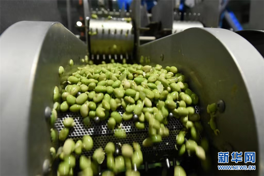 福來公司生產車間內,自動化生產線上翻滾的豆子。(受訪者供圖)