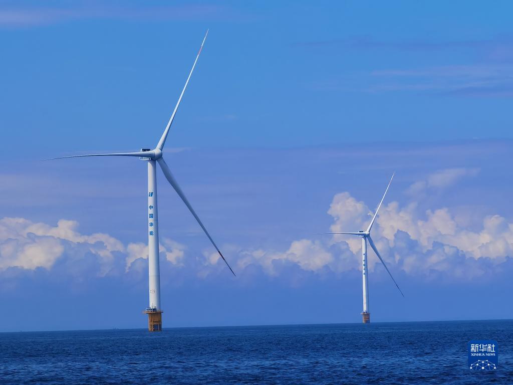 黃海之上,300多座高約百米的“大風車”傲然聳立,巨大的風電機組葉片不停轉動。這是并網不久的中國華能集團大連莊河海上風電場址項目,也是我國北方單體容量最大的海上風電項目,預計年上網電量可達17.3億千瓦時。