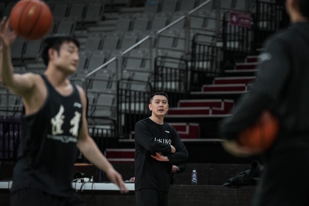 2月24日,遼寧本鋼隊主教練楊鳴(中)指導訓練。新華社記者 潘昱龍 攝
