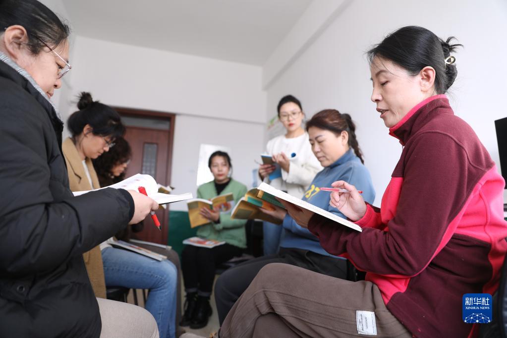 2月28日,遼寧省臺安縣逸夫小學教師李華麗(右一)和同事們進行開學前教研活動。新華社記者 姚劍鋒 攝