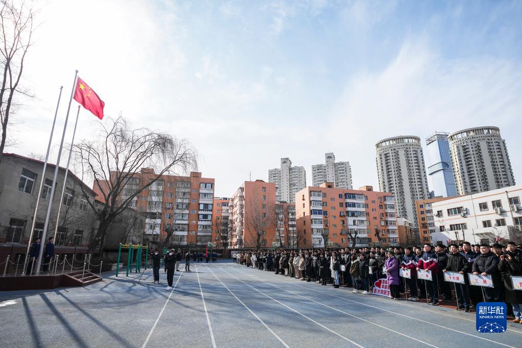 3月1日,沈陽市第七中學的師生在進行升旗儀式。新華社記者 潘昱龍 攝