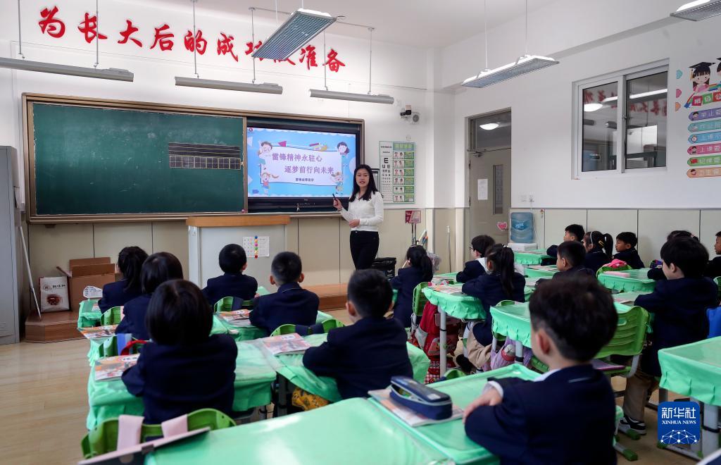 3月1日,在沈陽市童暉小學東校區,老師為同學們講授“開學第一課”。新華社記者 龍雷 攝