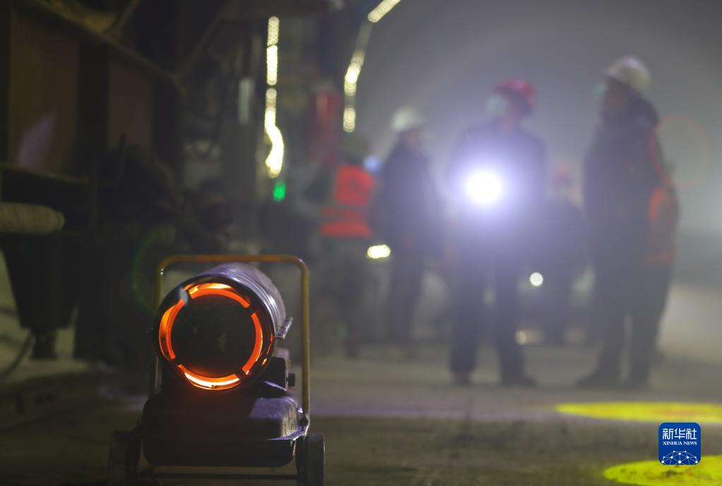 3月1日,在沈白高鐵遼寧段新賓隧道內,熱風炮給隧道加溫?! ⌒氯A社記者 楊青 攝