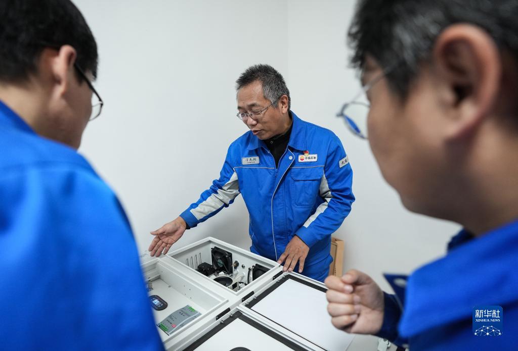 3月3日,“百姓雷鋒”刁克劍與同事在溝通研發中遇到的問題。新華社記者 潘昱龍 攝