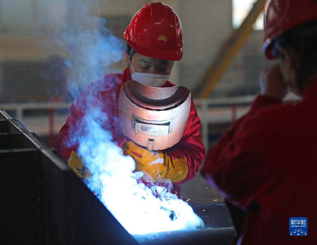 2月27日,李文靜在焊接車間作業。新華社記者 楊青 攝
