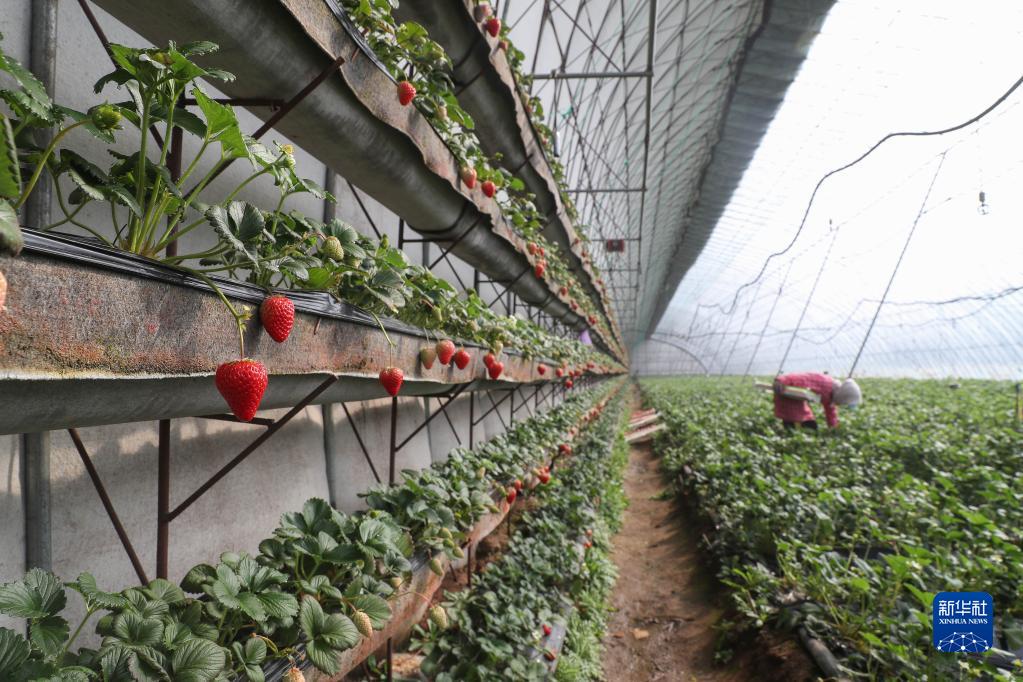 3月14日,村民在岫巖縣洋河鎮的草莓大棚采摘草莓。新華社記者 龍雷 攝
