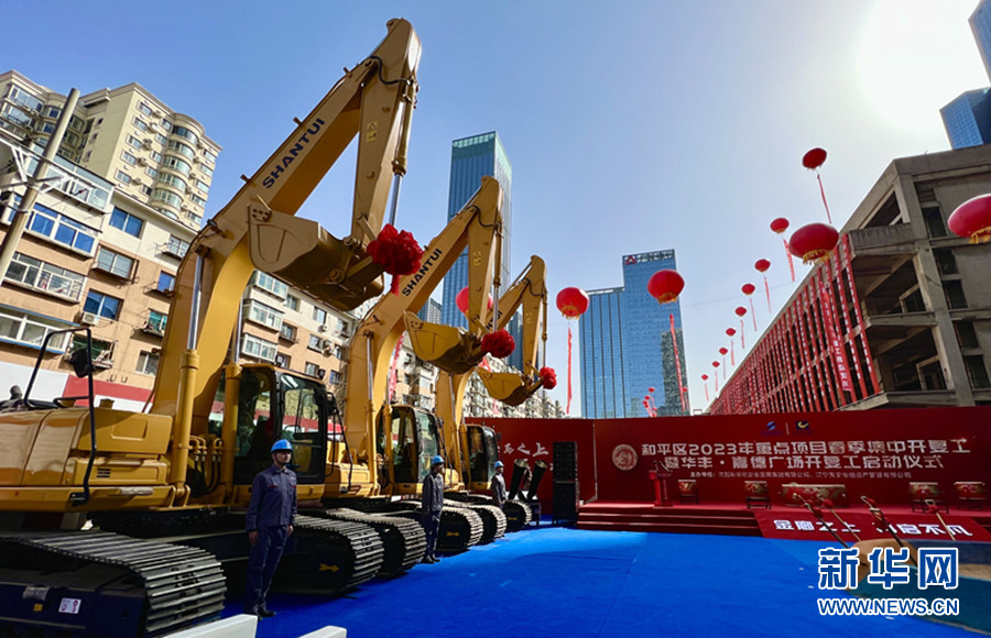 新華網沈陽3月27日電(唐曉瑭)3月26日,沈陽市和平區舉行2023年重點項目春季集中開復工暨華豐?嘉德廣場開復工啟動儀式。