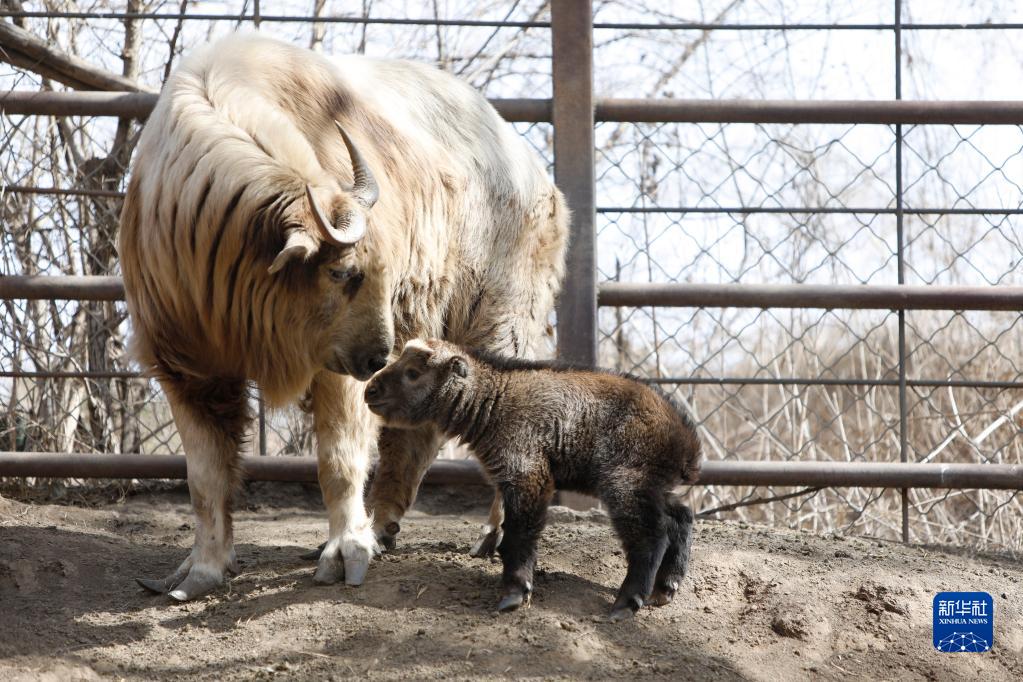 3月26日,在沈陽森林動物園,小羚牛緊隨在媽媽身旁。新華社記者 陳為 攝