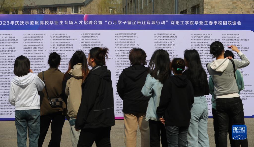 3月31日,學生查看展板上的企業信息。新華社記者 楊青 攝