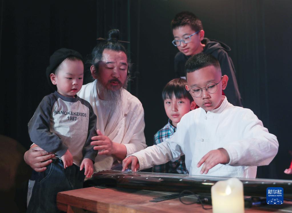 4月1日,小朋友在演出結束后體驗古琴演奏。新華社記者 龍雷 攝