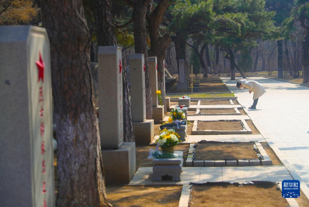 3月30日,一位市民到沈陽抗美援朝烈士陵園祭掃先烈。新華社記者 楊青 攝