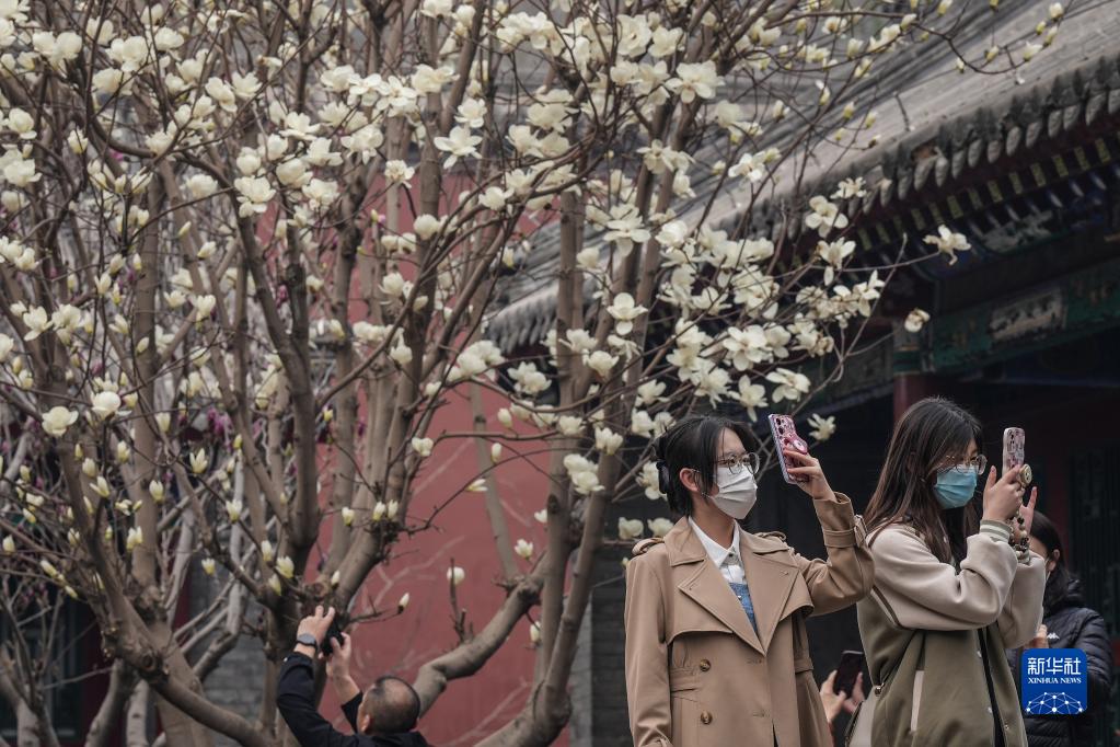 4月4日,游客在沈陽故宮賞花。新華社記者 潘昱龍 攝