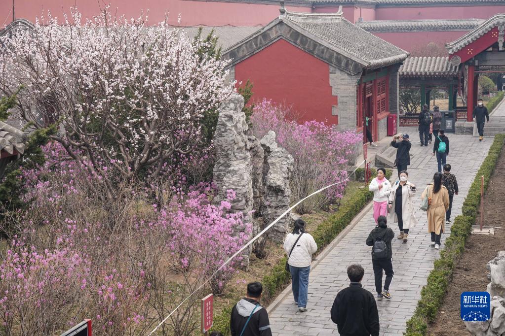 4月4日,游客在沈陽故宮賞花。新華社記者 潘昱龍 攝