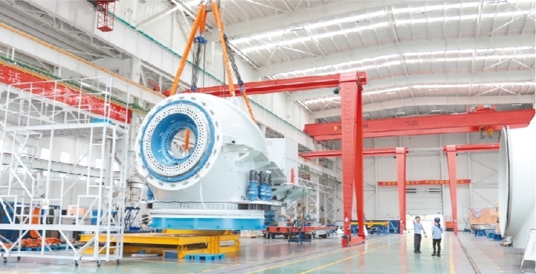中國船舶集團海裝風電股份有限公司風電機組裝配現場。照片由營口市發改委提供