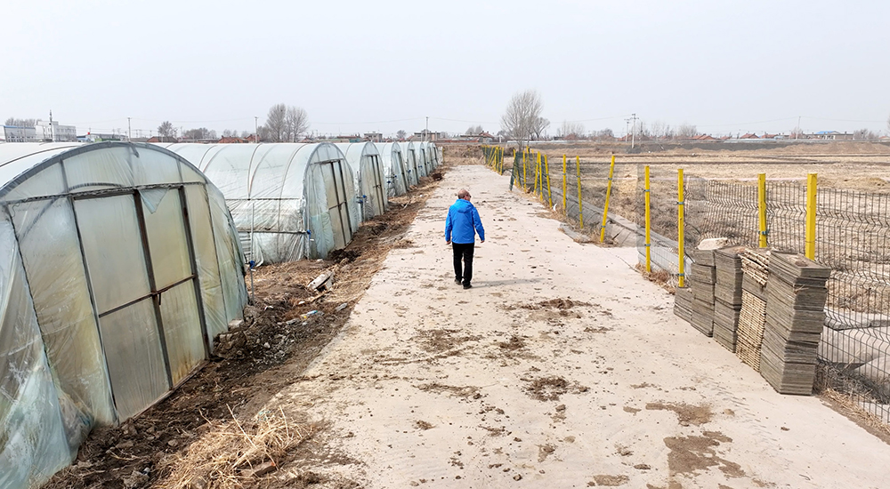 圖為關峰巡視廠區實驗大棚。新華網 夏銘陽 攝
