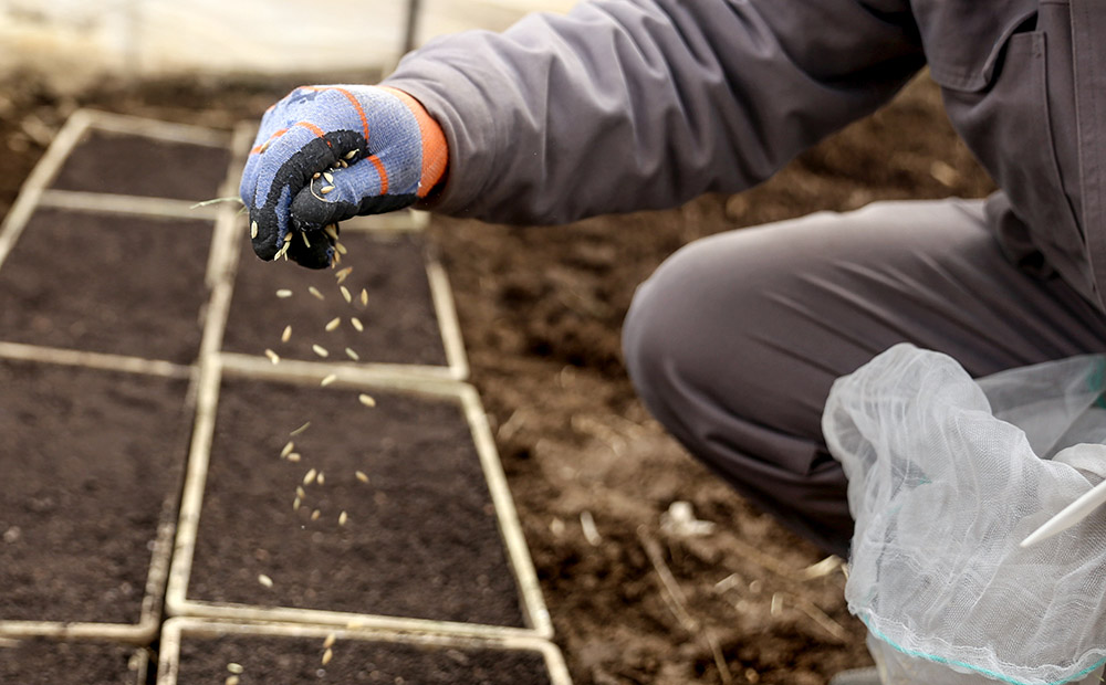 圖為工作人員在秧盤上撒種。新華網 夏銘陽 攝