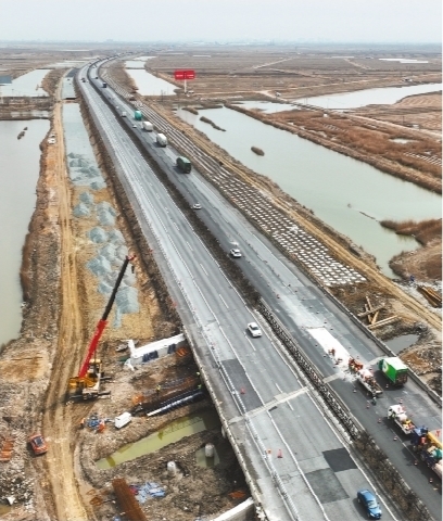 4月9日,記者在京哈高速改擴建項目現場看到,全長238公里的京哈高速公路綏中(冀遼界)至盤錦段改擴建工程正在緊張施工。目前工程第一階段建設任務基本完成,已進入第二階段,整個項目計劃2026年建成通車。(記者 楊靖岫)
