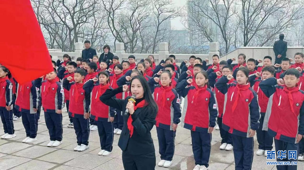 在抗美援朝紀念館,山上小學部分師生代表莊嚴地舉起右拳,面向巍峨的抗美援朝紀念塔,面向鮮艷的少先隊隊旗宣誓。(新華網發 受訪對象供圖)