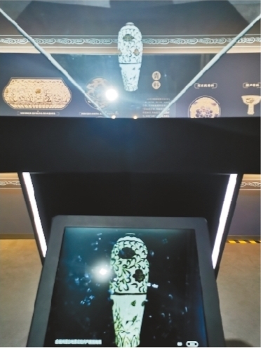 在“青花清韻”展覽的三維數字展示器上,觀眾輕觸屏幕,就能看到不同角度的數字展品。