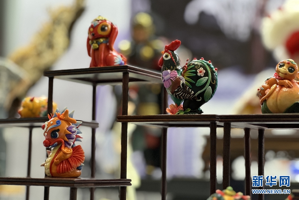 2023年大連市文化和旅游產業發展大會現場展示的面塑作品。新華網趙健彤攝