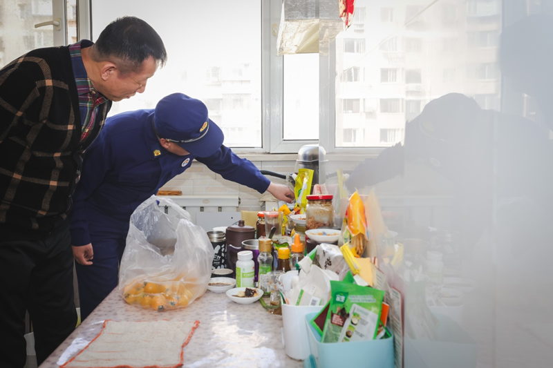 消防隊員到老勞模家,還有一項重要使命:幫助查找消防安全隱患。在老人的臥室、廚房,隊員們耐心講解著電源插排的正確使用方法,安裝燃氣報警器的必要性。
