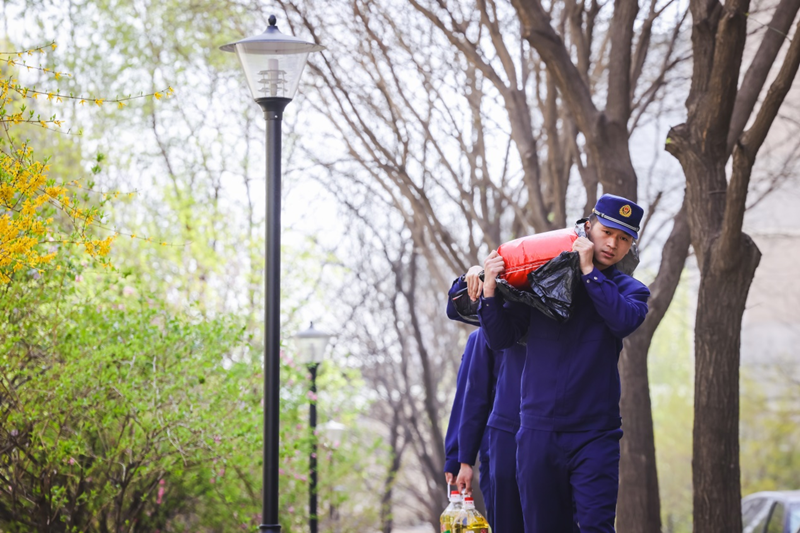 南十一路專職消防救援站南行200米,便是勞模社區的辦公樓,每位工作人員都是消防員的老熟人?!八麄冋就π?,訓練場地也不足,我作為旁觀者,很佩服他們的刻苦精神,沒有操場,他們白天就在我們社區樓群里長跑,連訓練帶巡查都有了。知道有些居民生活困難后,他們會組建學雷鋒小組,跟我們社區要了地址,二話不說就上門送去米面油?!鄙鐓^副書記李曉鋼說。