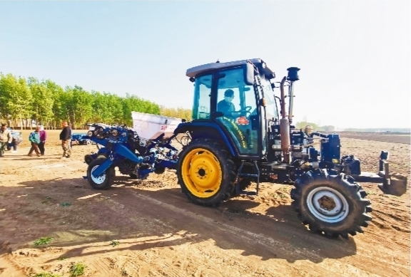 在盤山縣高升街道后屯村,小寶農機服務專業合作社使用玉米免耕播種機實施播種。記者 劉楊 攝