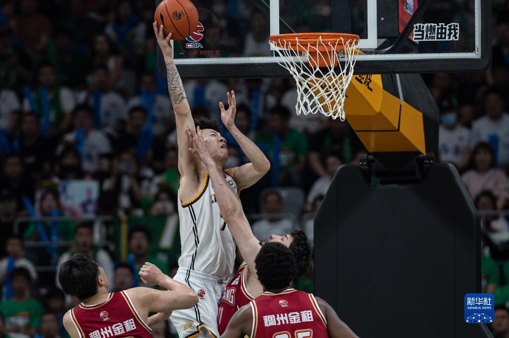5月15日,張鎮麟(上)在2022-2023賽季中國男子籃球職業聯賽(CBA)總決賽第四場比賽中。新華社記者 吳壯 攝