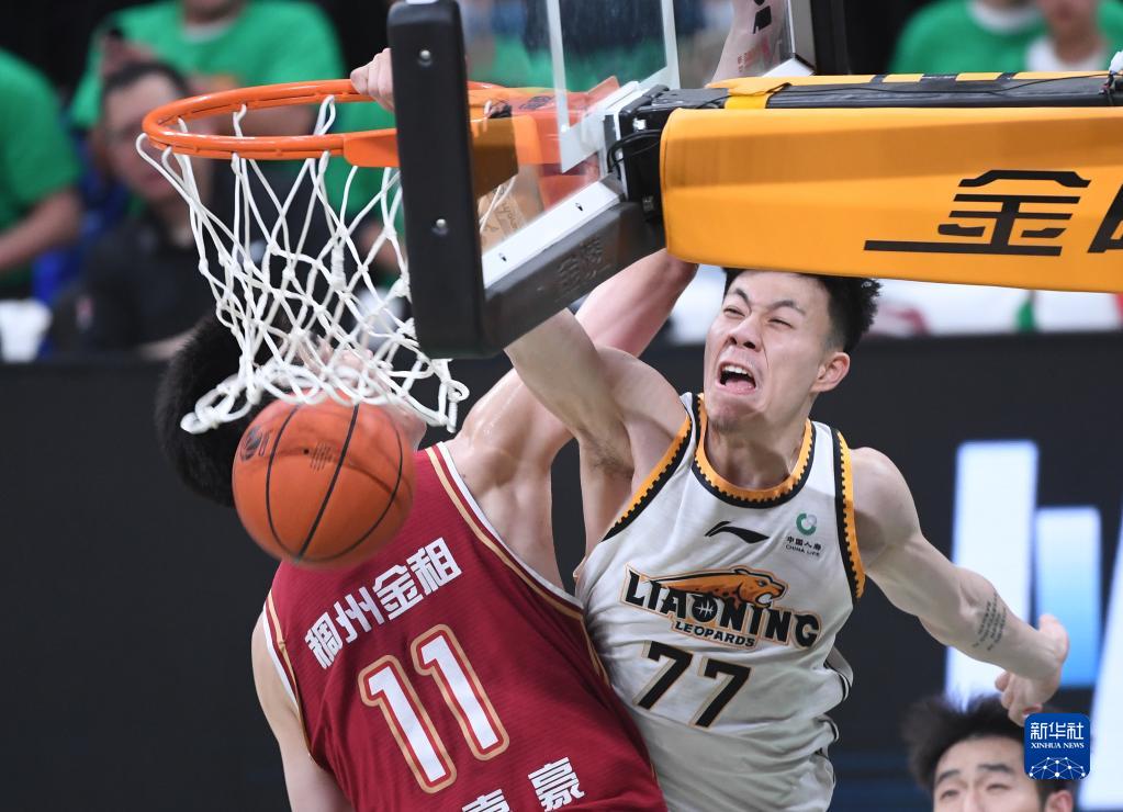 5月15日,張鎮麟(上右)在總決賽第四場比賽中扣籃。新華社記者 吳壯 攝