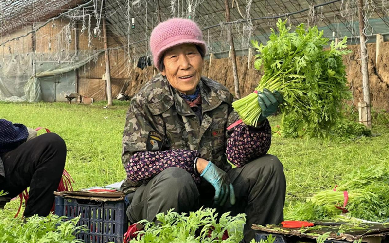 同樣忙碌的還有熊官屯鎮熊官屯村村民。在村民王艷家的大棚內,綠油油的茼蒿長得正旺,王艷正帶著十余名村民在棚內采收?!霸鄞骞灿信?000余棟,眼前這棟大棚,日產小菜就達到600斤?!毙芄偻痛濉暗谝粫洝泵閭ソ榻B,多年來,熊官屯村持續發展設施農業,目前已成為遠近聞名的小菜供應基地。