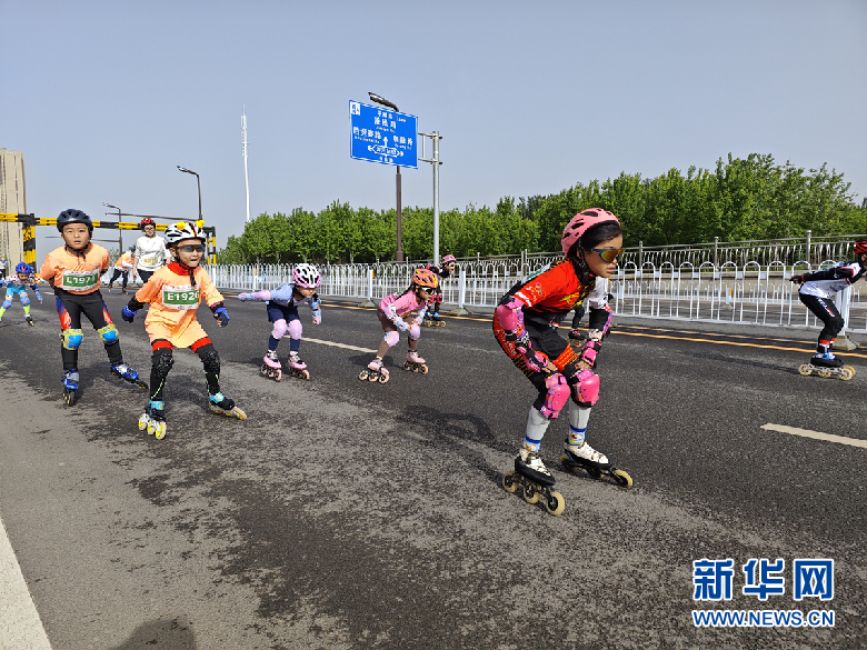 2023沈陽和平半程馬拉松開賽前,由輪滑愛好者組成的輪滑隊,為廣大跑友“開路”。新華網 唐曉瑭攝