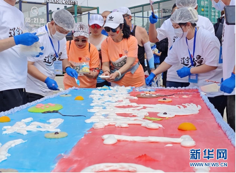 5月21日,參賽選手共享完賽后的喜悅。新華網 唐曉瑭攝