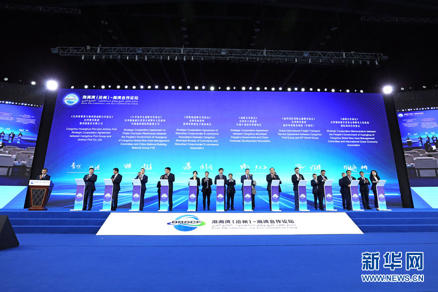 新華網石家莊5月21日電 5月20日,以“國內國際雙循環——共筑渤海灣-海灣合作新格局”為主題的渤海灣(滄州)-海灣合作論壇在河北省滄州市拉開帷幕。在論壇開幕式上,6個重點合作事項和6個重點項目進行了集中簽約,涉及港口建設、綠色化工、裝備制造、商貿物流、新能源等多個領域。