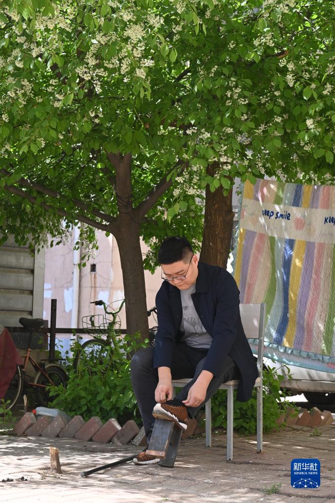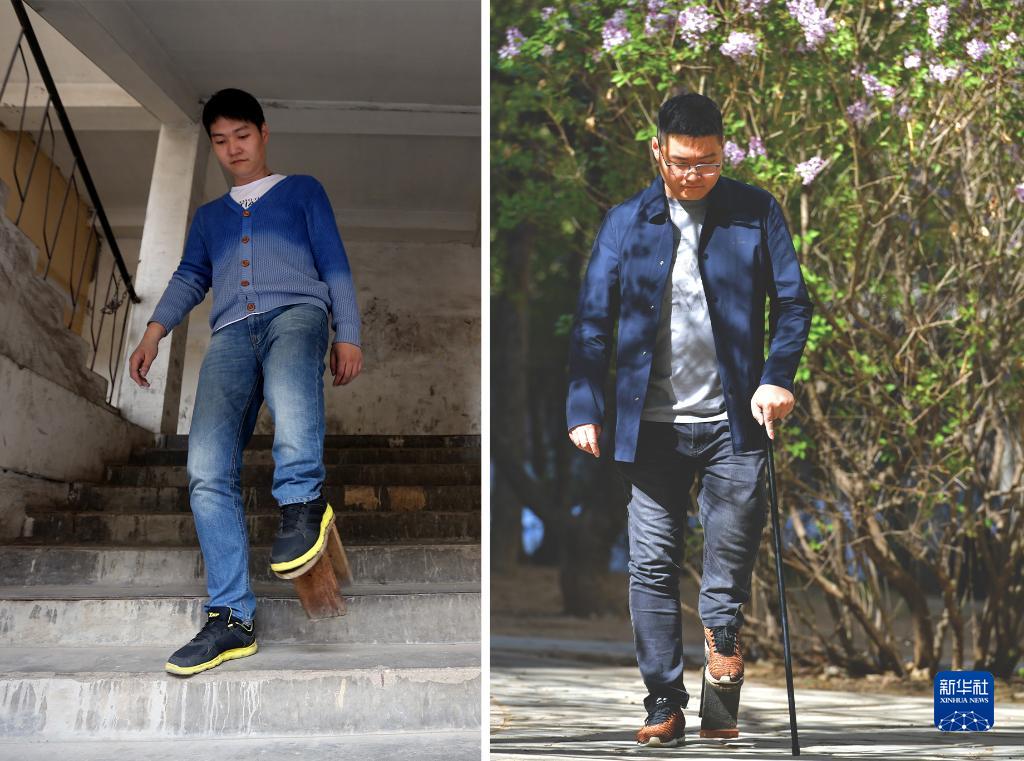 趙強在2歲時,不幸患上了多發性骨軟骨瘤,左腿生長緩慢,隨著年齡增長,兩條腿的長度差距越來越大,如今他的雙腿已相差23厘米。為了能自己走路,趙強嘗試過拄拐等多種方式,但效果不好,在家人建議下,他在左腳鞋底固定了一個小板凳,并逐漸適應了穿著“板凳鞋”行走。