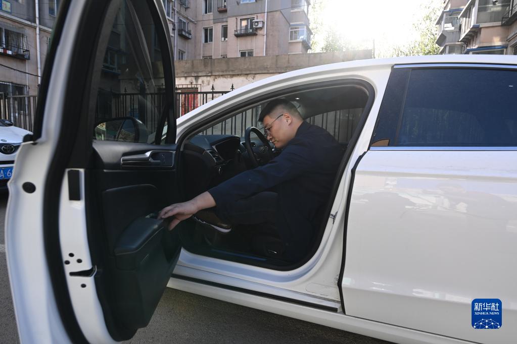 在陽光家園門前的停車場,趙強準備開車回家(4月18日攝)。