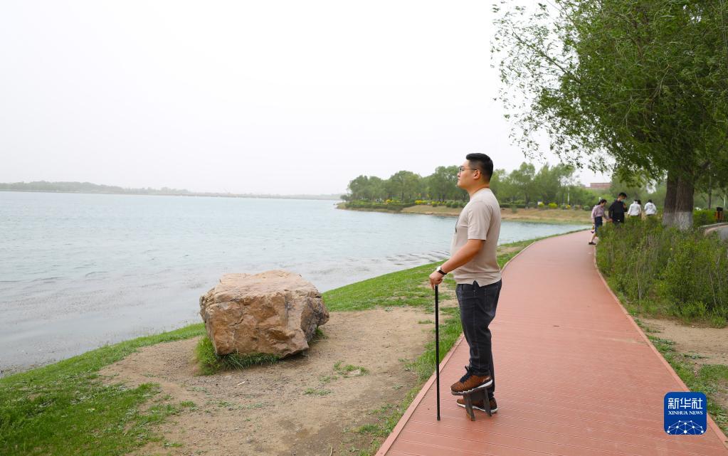 趙強在沈陽丁香湖公園散步(5月20日攝)。