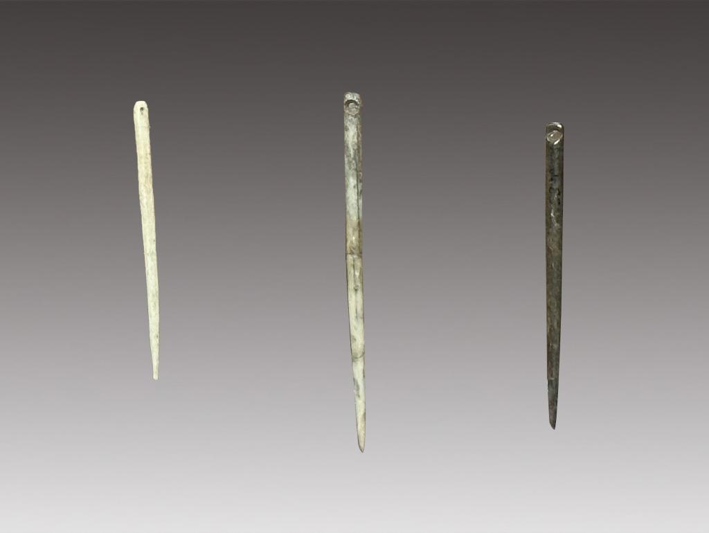 琳瑯滿目的展品中,一組魚叉和針一樣的展品吸引不少參觀者駐足?!斑@個骨魚叉是目前我國舊石器時代遺址中出土的唯一一件完整的捕魚工具,而纖細精致的骨針證明當時人類已能縫制衣物抵御嚴寒,整組文物標志著小孤山先民的骨器制造已達到了較高水平?!北敬握褂[的策展人王闖介紹說。