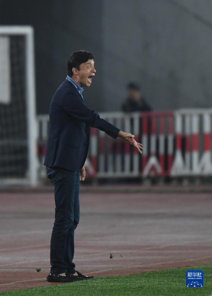 5月28日,大連人隊主教練謝暉在場邊指揮。新華社記者 龍雷 攝