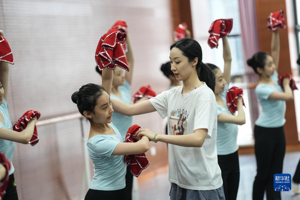 5月30日,遼寧芭蕾舞團附屬芭蕾舞蹈學校的老師在為二年級的學生糾正動作。新華社記者 潘昱龍 攝