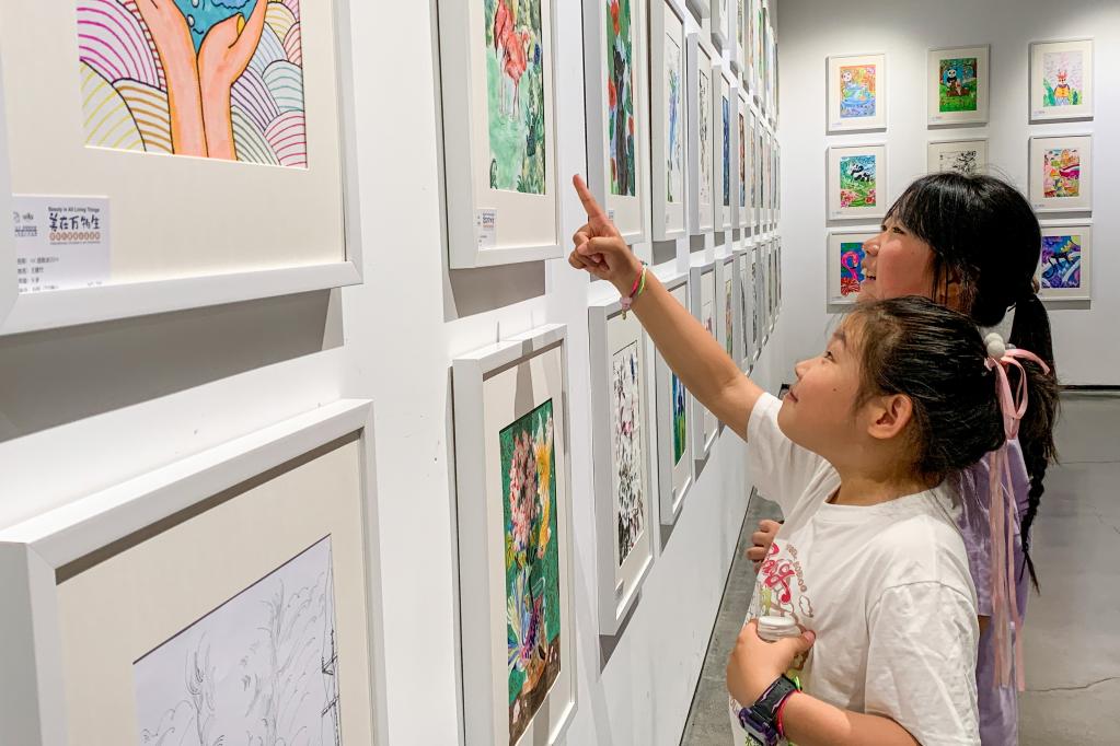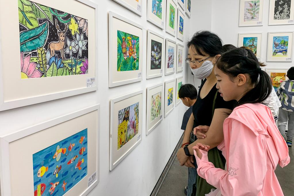 圖為“美在萬物生”兒童畫公益巡展現場。