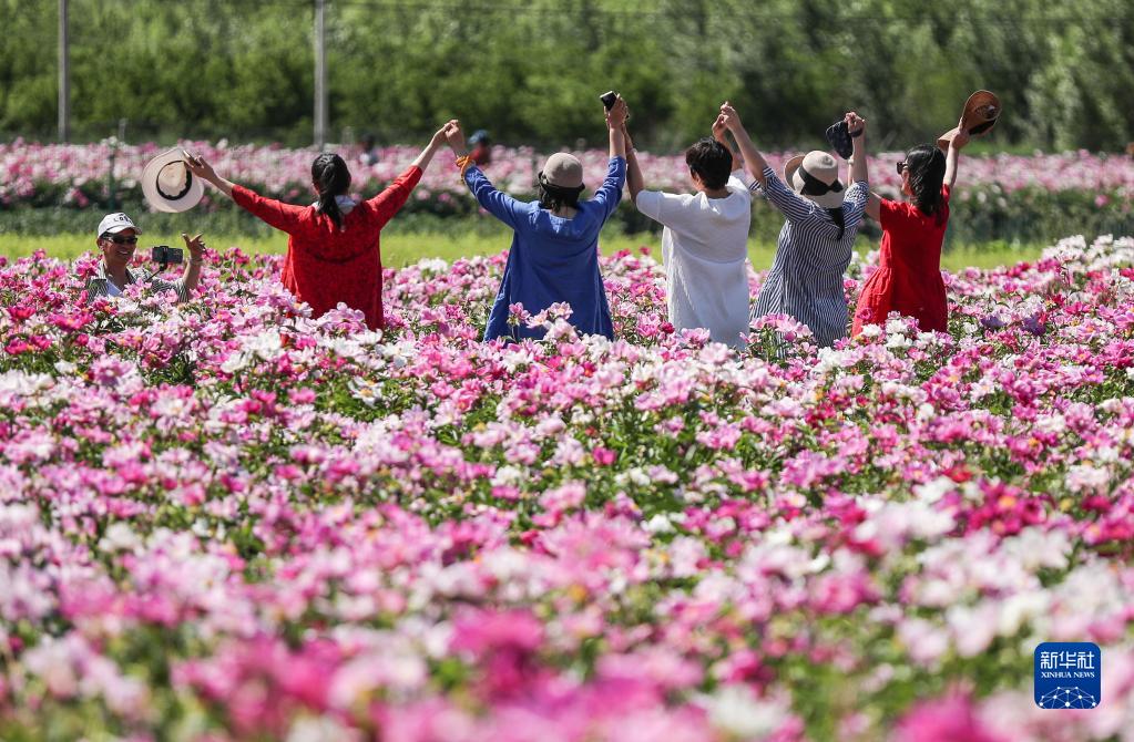 阜新市阜蒙縣大板鎮三家子村中草藥種植基地的芍藥花正值花期。