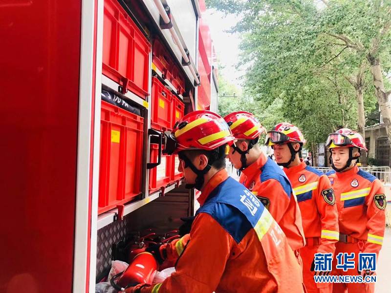 ????沈陽市和平區消防救援大隊的消防員在高考考點周邊檢查消防車設備。沈陽市消防救援支隊供圖