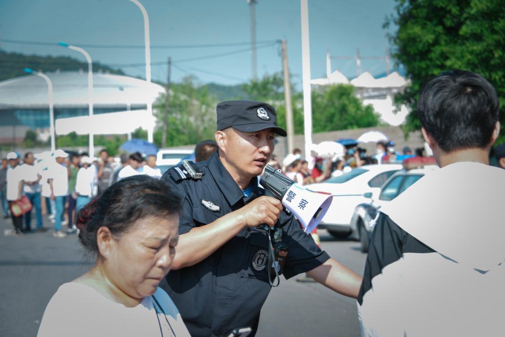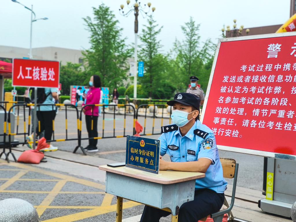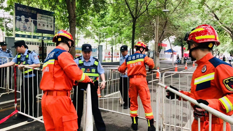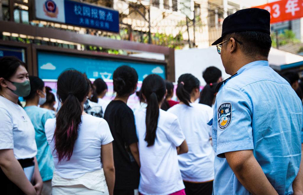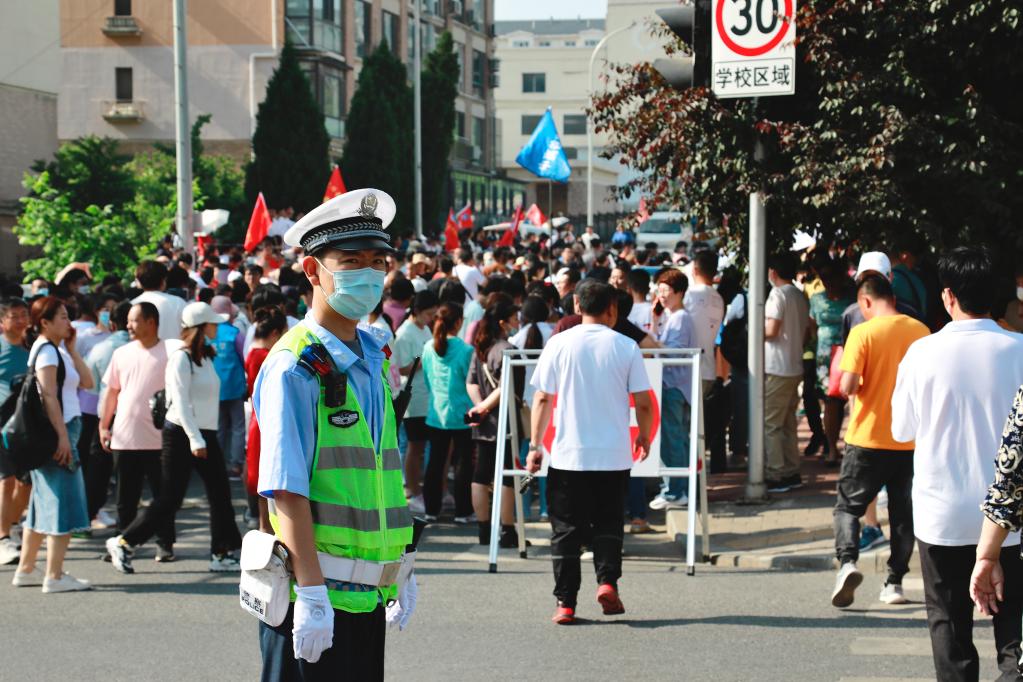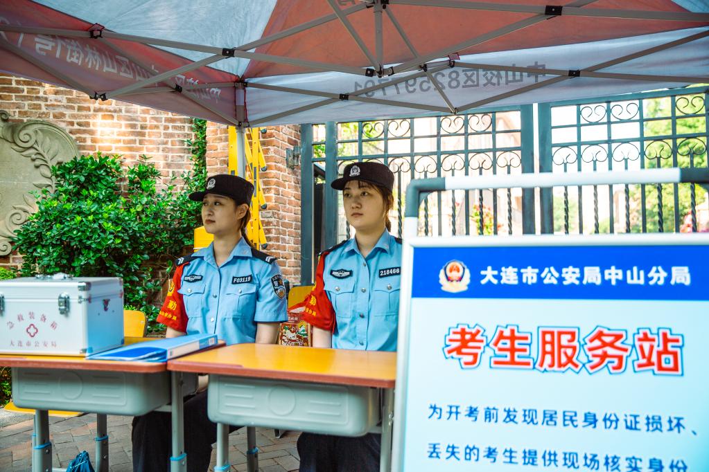 在考點設立高考安保便民服務站、護校崗,為考生和家長提供周到、熱心、及時的服務。(大連市公安局供圖)