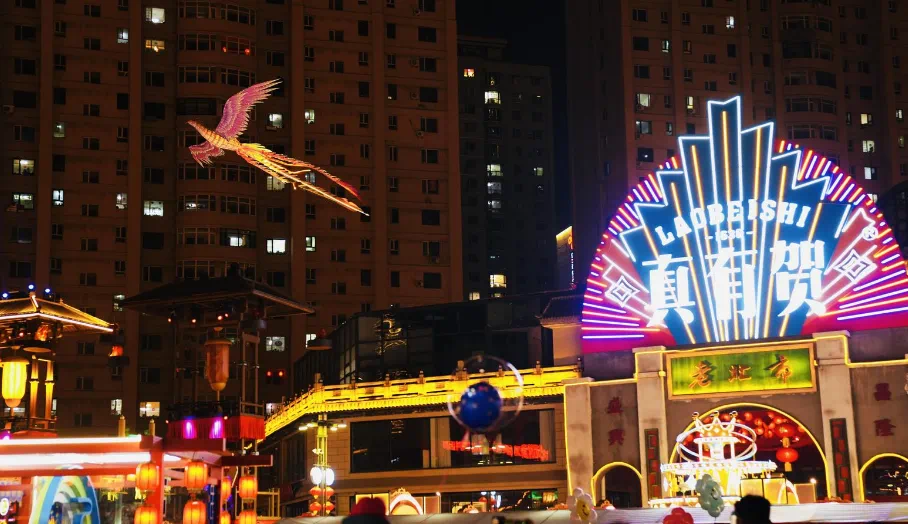 沈陽老北市有近400年的歷史,曾是百貨售賣、江湖賣藝、曲藝展演等生意集聚地,是極具沈陽市井文化特色的文化街區。而今,這里已成為集晨享、晝玩、夜游、宵樂四大場景于一體的“不夜城”。