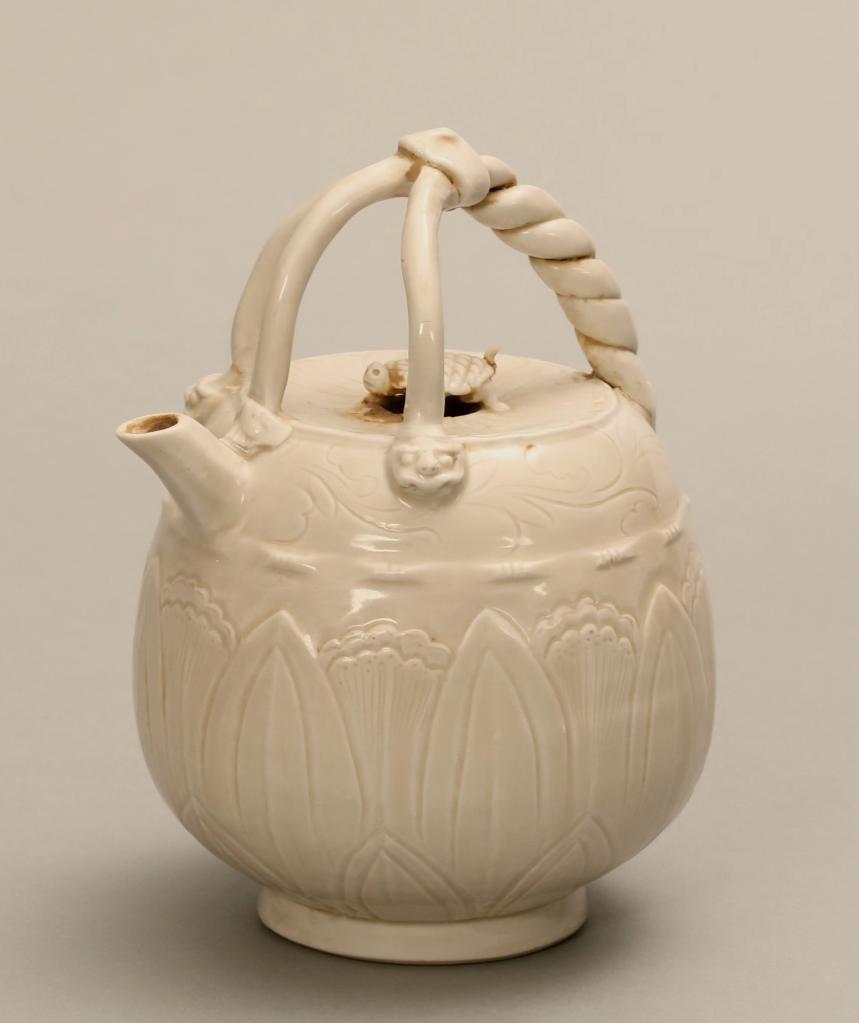 展出的宋定窯白釉刻花三叉提梁壺。沈陽故宮博物院供圖