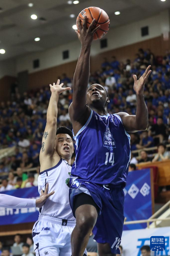 7月9日,遼寧益勝隊球員洛夫頓(左)在比賽中上籃。新華社記者 潘昱龍 攝pagebreak