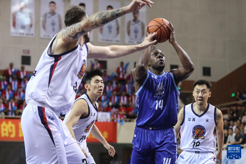 7月16日,遼寧益勝雪狼隊球員哈德森(右)在比賽中上籃。新華社記者 潘昱龍 攝pagebreakpagebreak